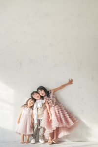 お子さまの成長を記録する家族写真は、シンプルな空間だからこそ、表情や仕草がより自然に映ります。特に、赤ちゃんや小さなお子さまは背景の色に影響されやすいため、白を基調とすることで、透明感のある優しい雰囲気の写真を残すことができます。